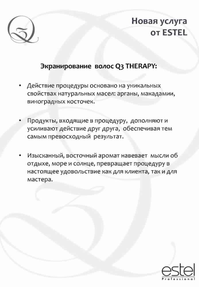 Инструкция 1 страница. Набор для Экранирования волос Estel Q3 THERAPY
