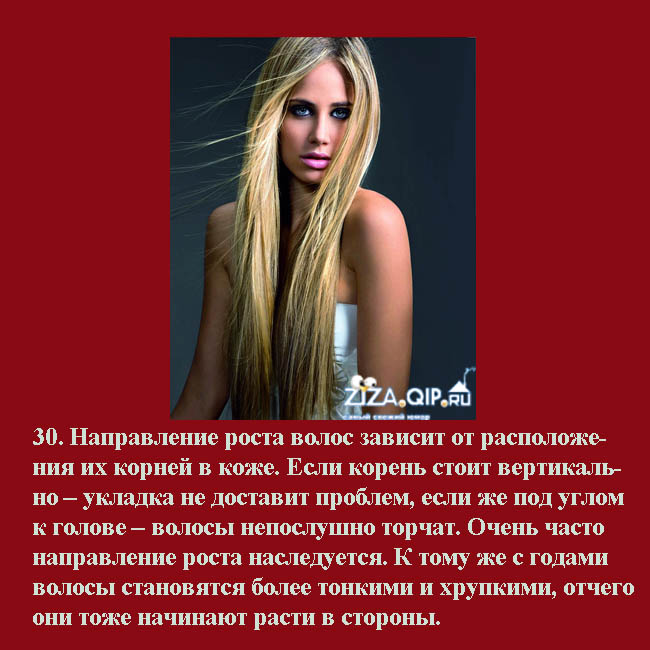 А знаете ли вы, что волосы на вашей голове в состоянии выдержать вес двух слонов, или то что больше всего волос на голове растет у блондинок? А возможно мужскую часть нашей аудитории удивит тот факт, что каждая третья женщина регулярно красит волосы.