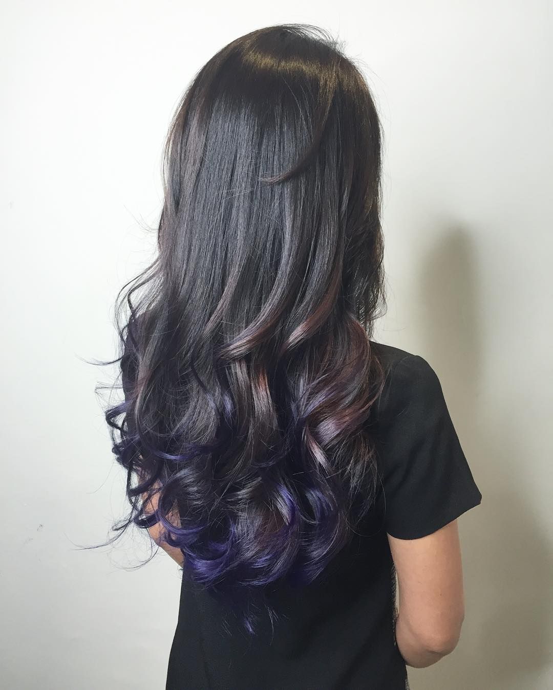 Фиолетовое омбре на черные волосы