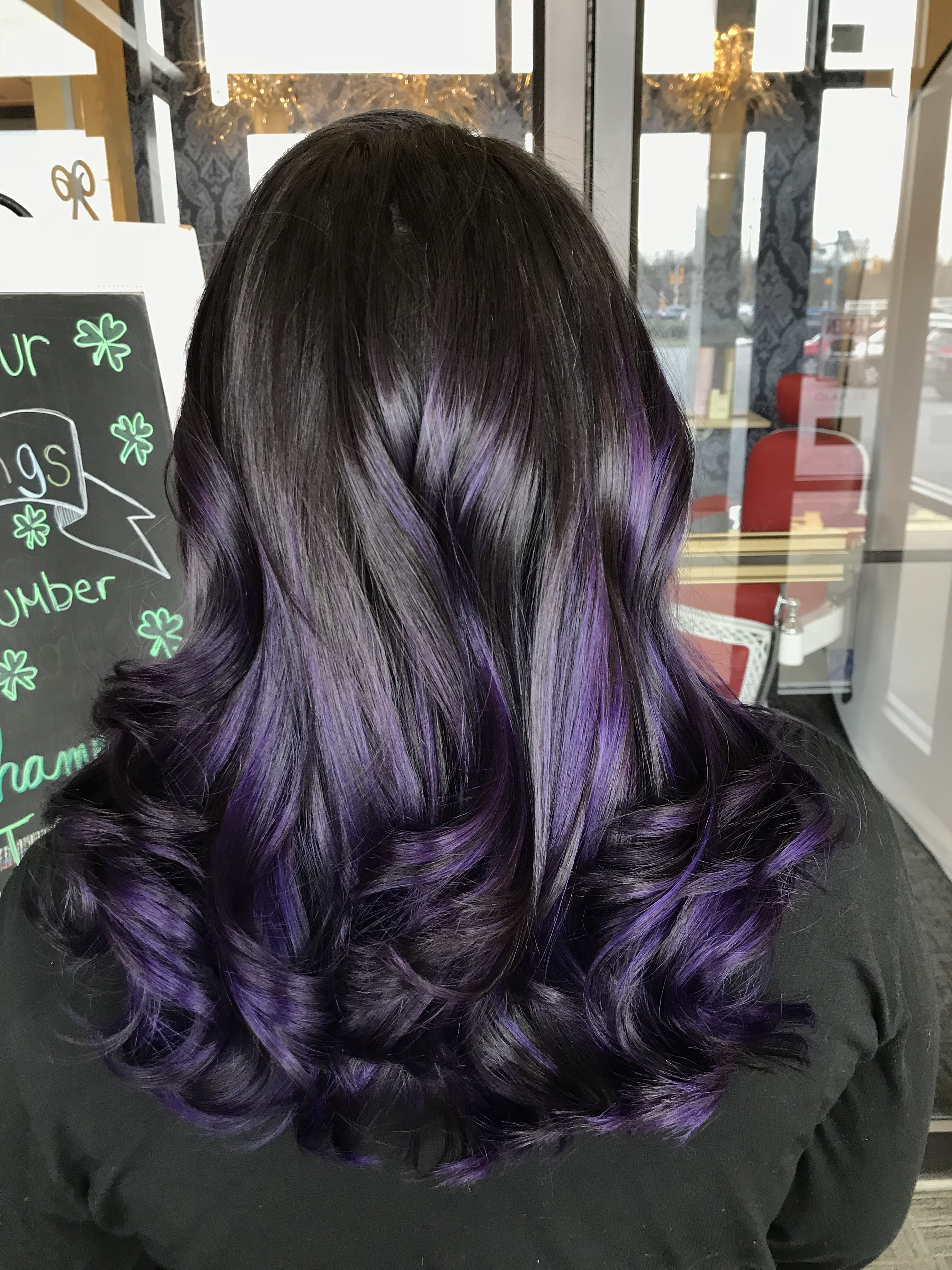 Мелирование волос черный с сиреневым оттенком