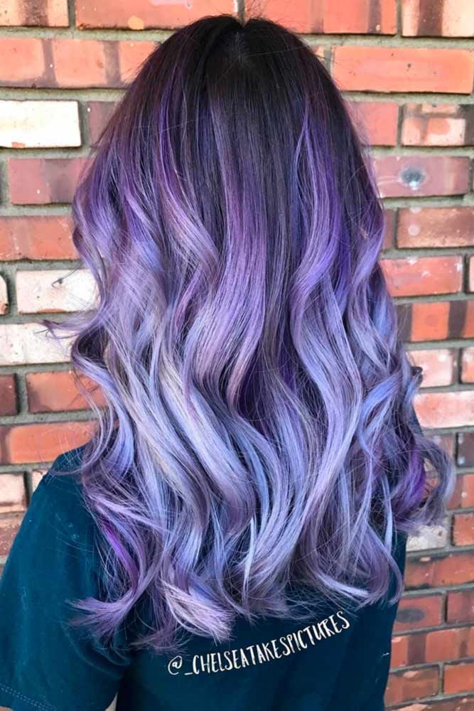Если вы привыкли носить прямые волосы или они уже прямые, вы сможете проснуться и пойти после того, как стилист сделает фиолетовое мелирование. Держите средний свет и концы темными, чтобы переключить его.
