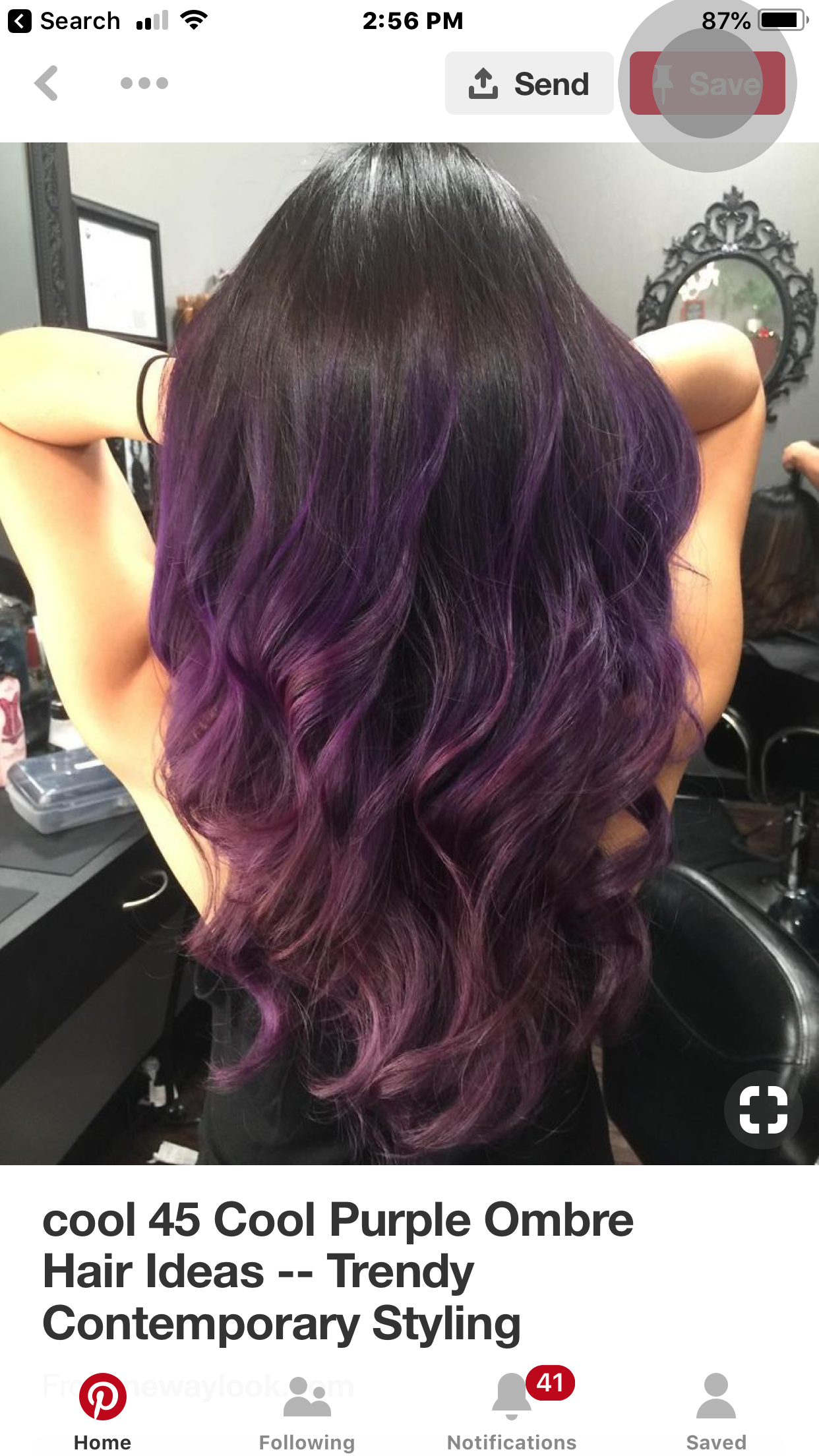 Фиолетовое омбре на темные волосы