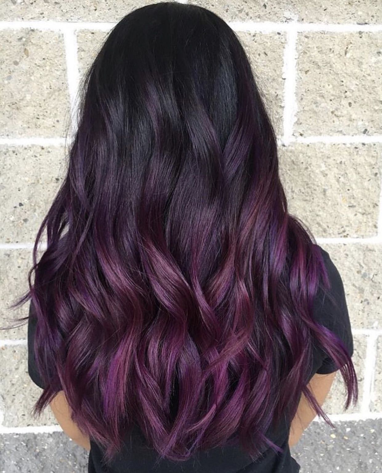 21. Темно-фиолетовый балаяж на длинных волосах