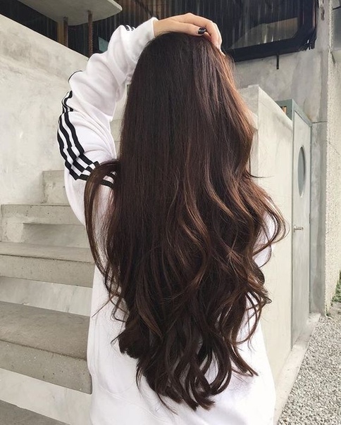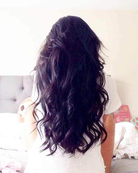 Шикарные волнистые волосы темного цвета у девушки со спины.