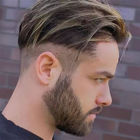 Еще одна классическая прическа. Виски выбриты, волосы на затылке постепенно удлиняются, на макушке их длина составляет пару сантиметров. Есть несколько видов стрижки, которые отличаются уровнем выбривания волос. Тот или иной вариант «фейда» подойдет к любому типу лица. Эту прическу часто выбирают мужчины с бородой.