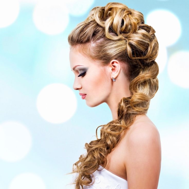 В самом простом варианте волосы просто собираются в хвост, который закрепляется красивой заколкой или резинкой. Но можно сделать и более сложные вариации! Например, сформировать хвост вокруг специального «бублика», при помощи которого обычно делают пучки. Для начала надо завязать на затылке совсем маленький хвостик, на который и следует закрепить сам «бублик», а потом, при помощи шпилек уложить на него пряди хвоста, поверх волос можно надеть сетку или же тиару, гребень со стразами.