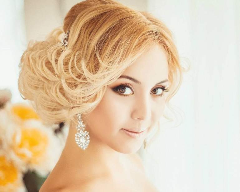 Блондинкам и русоволосым лучше сделать пучок из локонов, который придаст нежность и романтизм.