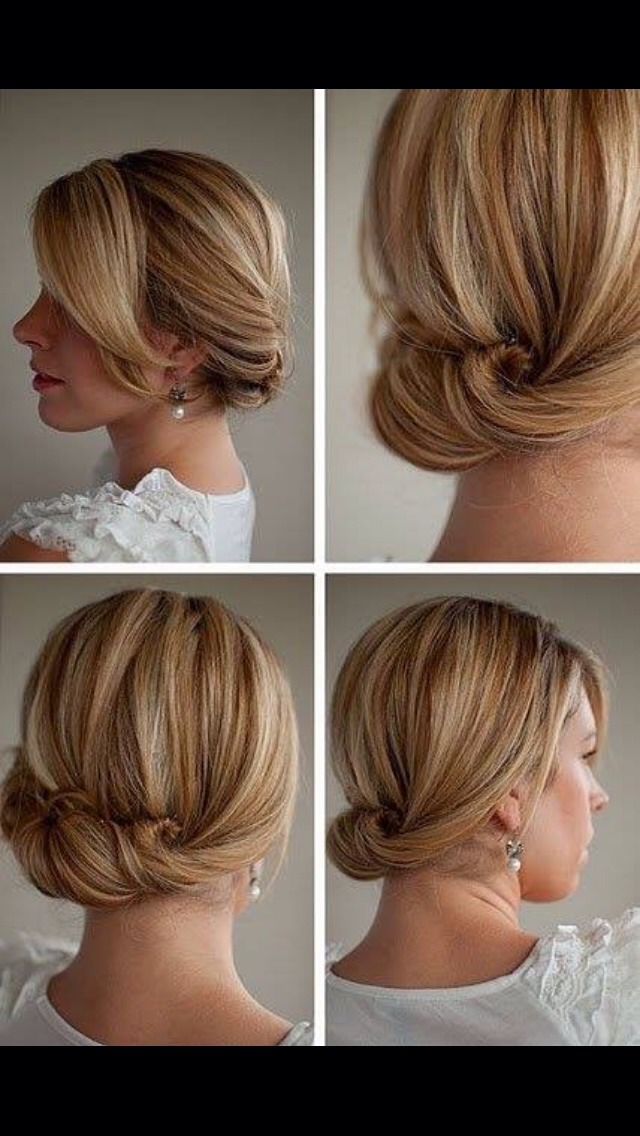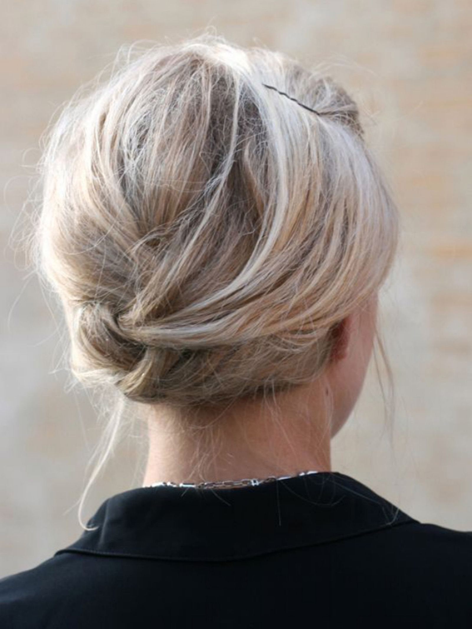 Основное требование для такой укладки коротких волос – это минимальная длина 10-15 см. Собрать волосы можно с помощью специальных аксессуаров – фиксирующих лент, резинок или повязок, которые одевают поверх волос. Затем поочередно небольшие прядки заворачиваются под аксессуар, который можно в конце закрепить невидимками.