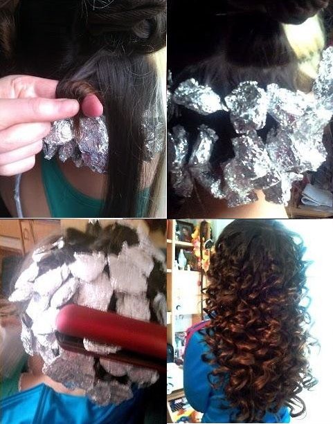 Она засунула волосы в эти носки и оставила их сохнуть, пока спала. Когда она сняла носки утром, то заметила, что некоторые локоны были более плоскими, чем другие, и использовала утюжок, чтобы подправить их, прежде чем выйти из дома. Она думает, что пара плоских локонов, вероятно, из-за того, что у нее так много волос.