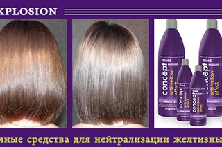 Для того чтобы убрать желтизну с осветленных волос одну часть оттеночного шампуня необходимо смешать с 2-3 частями обычного шампуня и нанести на волосы. Подержать на голове около двух минут. Цвет шевелюры получается ближе к белому! Но если этот шампунь хоть немного передержать, волосы могут вас «порадовать» пепельно-серыми или нежно-голубыми оттенками.