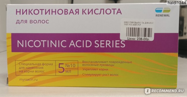 Иногда чтобы отрастить длинные, шикарные волосы девушки идут на жертвы используя всё начиная с масел, заканчивая какими — то сомнительными процедурами. Вот и я не исключение. Начиталась в интернете кучи советов и статей, какой шикарный эффект если использовать никотиновую кислоту ( витамин В3). Решила естественно попробовать.Пошла в аптеку и купила себе никотиновую кислоту — Виал. В упаковке десять ампул. Стоимость препарата всего двадцать три рубля.