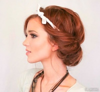 можно с конструкции из кос и пучка, дополнительно используя повязку как декор.