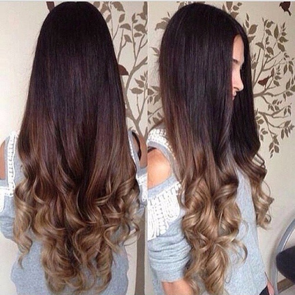 Переход цвета смотрится очень стильно, добавляет прическе объема и не требует сложных укладок. Восхитительно выглядит как на прямых, так и на кудрявых волосах любой длины. Сделать красивое омбре на темных волосах можно и в домашних условиях и в салоне, при этом частота покраски значительно снижается.