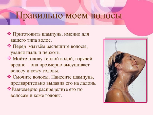 1. Не нужно мыть волосы слишком горячей водой. Ошибочно считать, что так волосы лучше вымоются, наоборот, горячая вода стимулирует выработку кожного сала, которое и делает волосы грязными. 2. Чистые волосы долго будут радовать вас, если правильно подобрать для них шампунь, а также средства для укладки. Подбирайте их исходя из типа ваших волос и особенностей кожи, сделать это вам поможет дерматолог или косметолог. Жирные волосы рекомендуют мыть мылом (дегтярным, детским).