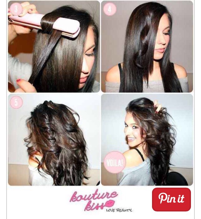 Для более быстрой завивки подготовленную прядь зажимается между пластинами у корней. Немного опустить утюжок, чуть повернув его, подержать на месте 3 сек. Затем опять опустить вниз и повернуть в другую сторону. И далее, по всей длине пряди. В конце пряди повернуть утюжок на 360 градусов скользя ей по волосам. Эффект будет поразительный.