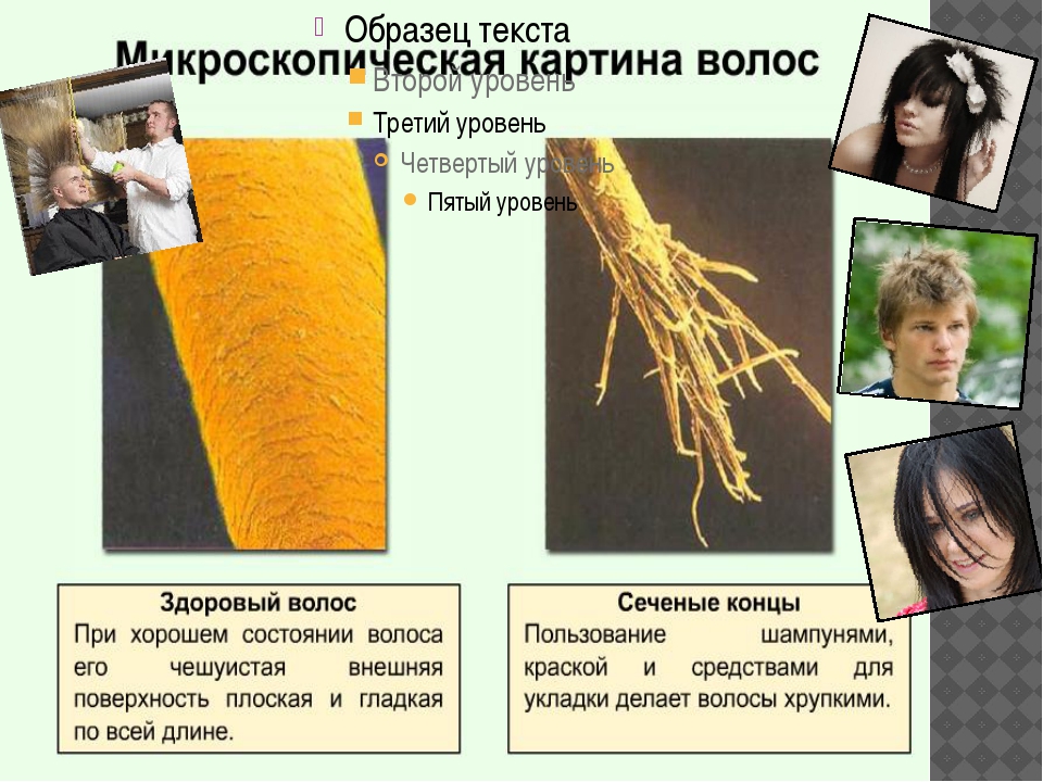 СТРУКТУРА ВОЛОСВолосы — удлиненные ороговевшие образования. Кератин — это особый белок, устойчивый к износу.Это белок, из которого состоят ногти. Как и другие белки в организме, кератин также представляет собой большую молекулу, состоящую из более мелких единиц, называемых аминокислотами. Аминокислоты соединены в цепочку, как бусинки на нитке.