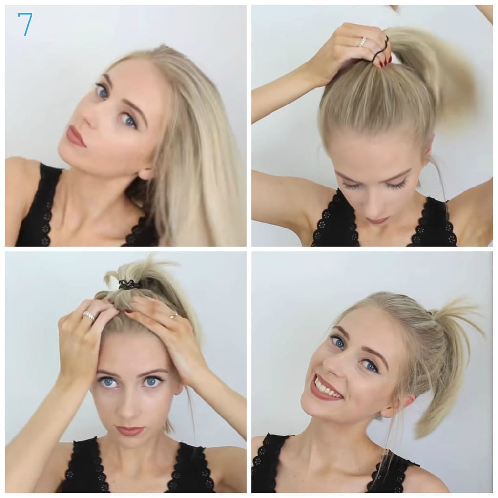 Сделать ее можно с помощью резиновой или матерчатой ленты. Для этого локоны зачесываются назад и закрепляются с помощью мусса и лака, а челка – остается на месте.
