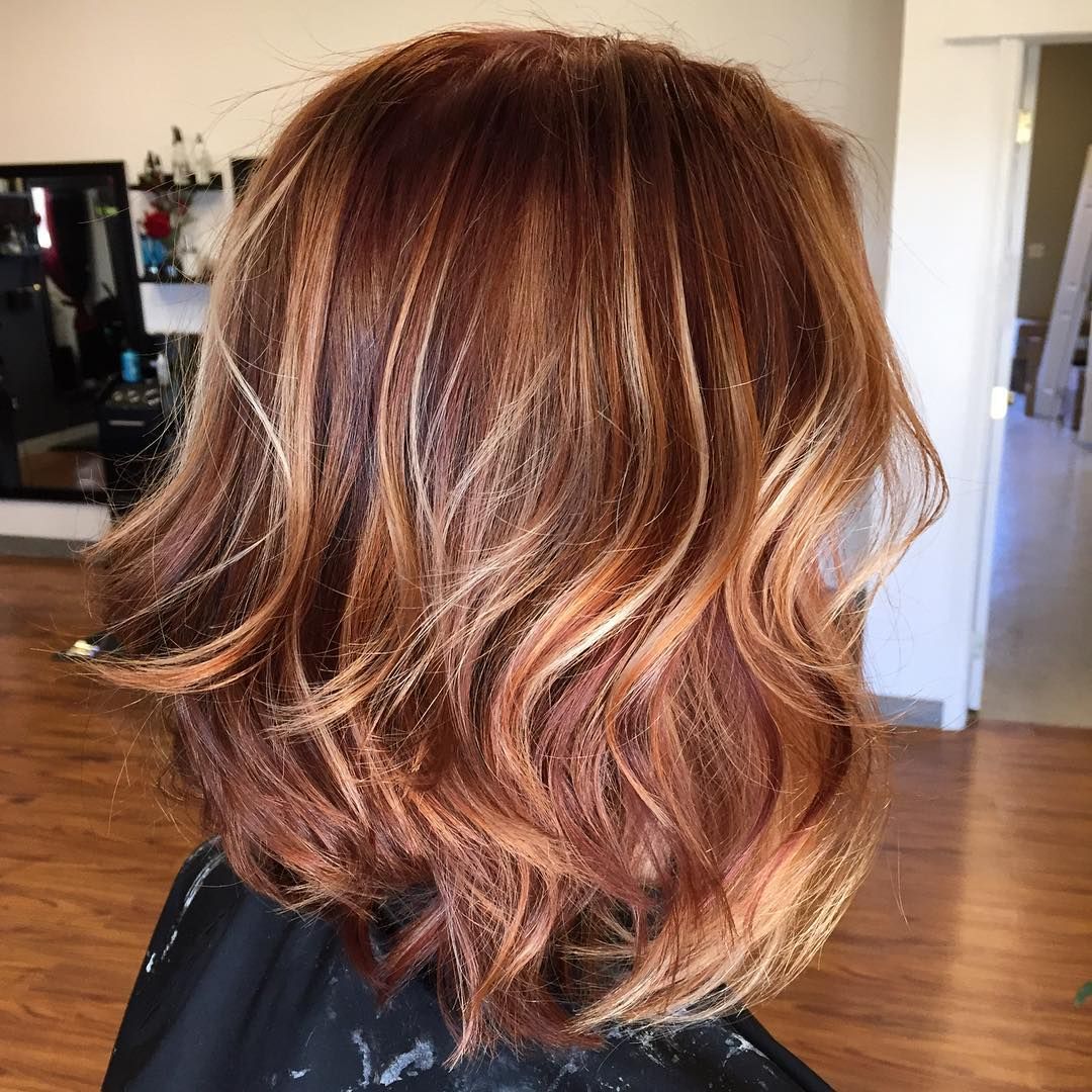 16. Карамельное мелирование на рыжих волосах