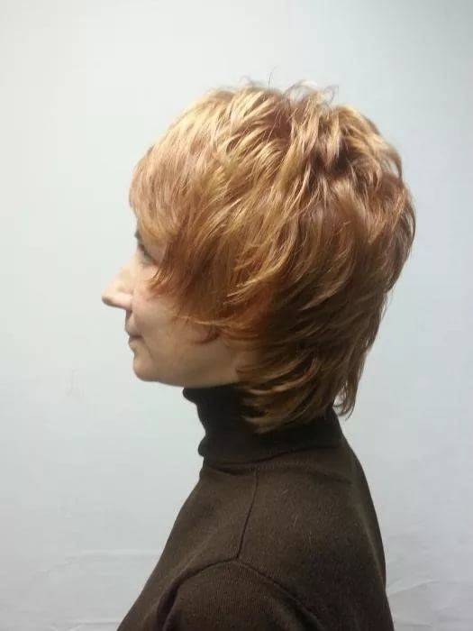 Создается большое количество слоев — самые короткий срез на макушке. Получается довольно пышная «шапочка» из волос. Если волосы тонкие, лишены объема, такой вариант подходит больше всего.
