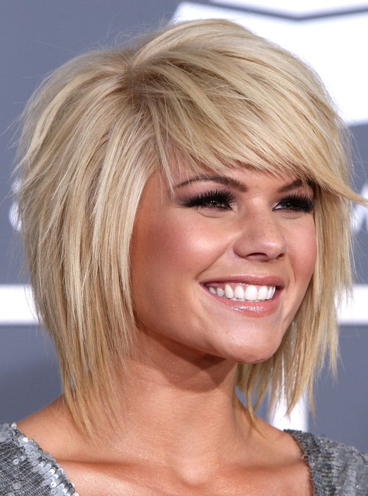 Для квадратной и круглой форм лица идеально подойдет каскад с косой удлиненной челкой, которую хорошо зачесывать набок. Можно остановить выбор на прямой челке с рваными краями.