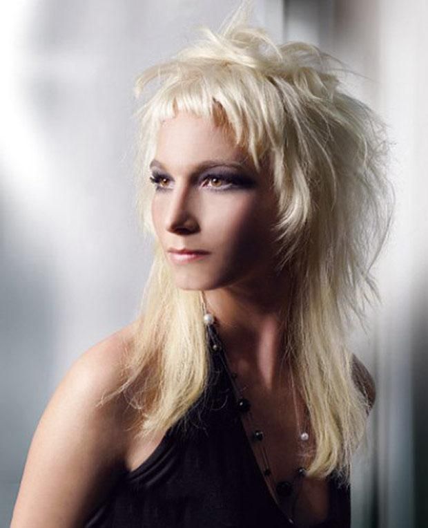 35 Длинная прическа с бахромой и яркой челкой