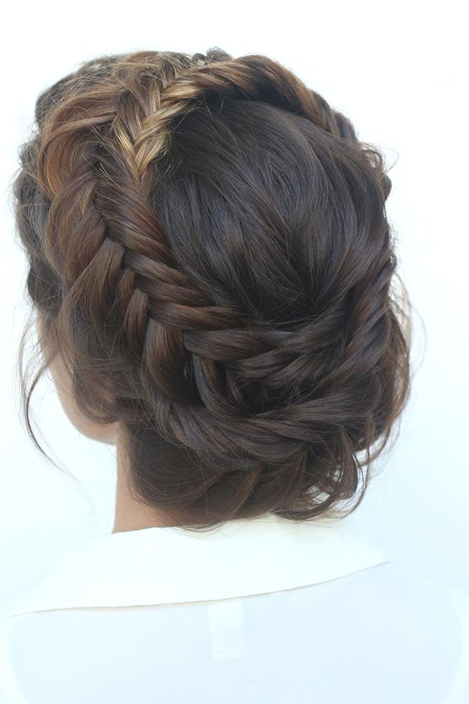 Эту прекрасную корону из трех кос очень легко сделать. Все, что вам нужно сделать, это сплести две косы «рыбий хвост» из половины ваших волос и заколоть их на затылке. Этот замысловатый стиль идеально подходит для подружек невесты и первых свиданий.