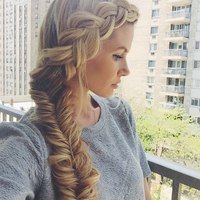 Заплетите волосы сбоку в рыбий хвост.Это выглядит лучше, когда немного грязно, поэтому не беспокойтесь о взлетах.