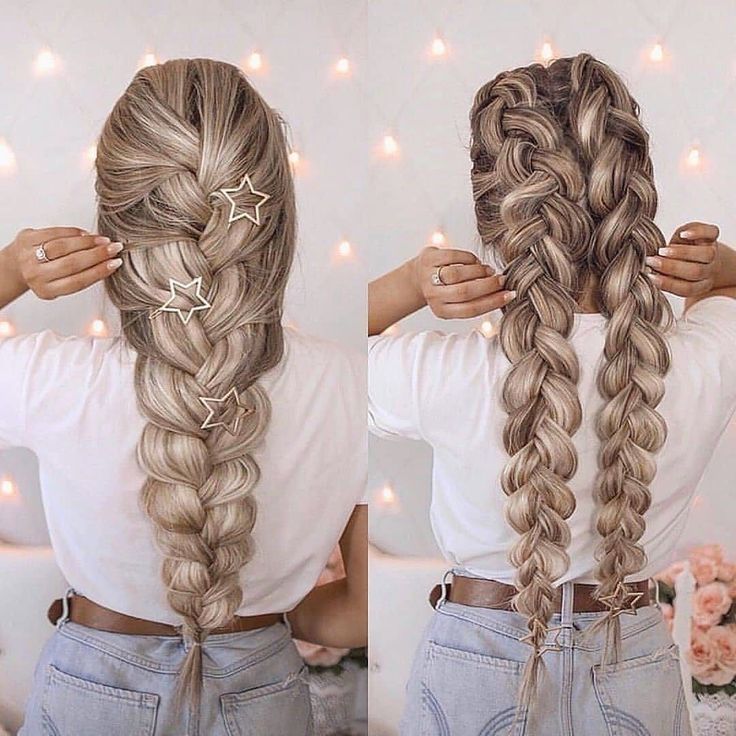 - Каждую косичку перебросьте на противоположную сторону и закрепите кончики невидимками.