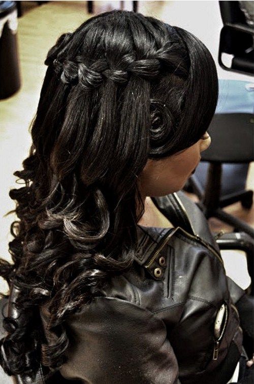Вам наверняка понравится эта идея, если вы ищете черную плетеную прическу для особого события, чтобы выглядеть гламурно. Скрутите верхнюю половину искусственных прядей и завяжите их в большой пучок, оставив оставшиеся волосы распущенными.