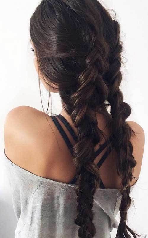 Это похоже на вышеупомянутый стиль косы, но имеет небольшие отличия, такие как; волосы выглядят разделенными пробором, а две голландские косы заплетены спереди, а не собраны в пучок. Итак, вы видите, как простой поворот может изменить женский образ от утонченного, зрелого до гламурного шика.