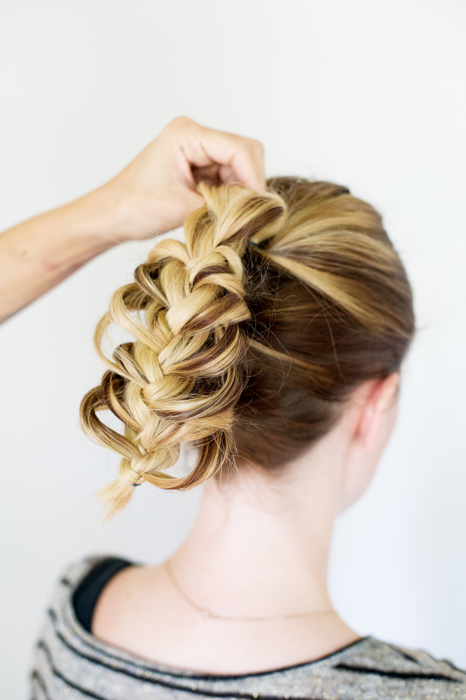 - Чтобы придать плетению больше объема и текстуры, слегка потяните за секции. При необходимости закрепите невидимками.