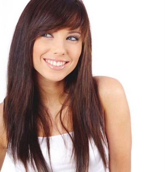Косая челка универсальна, так как подходит всем девушкам вне зависимости от формы лица: квадратная, треугольная, овальная или круглая.