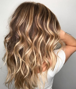 Напоминающий теплые дни, проведенные на пляже, этот образ отлично сочетается с грязными пляжными волнами. Цвет в основном сконцентрирован на концах, из-за чего волосы выглядят так, как будто они залиты солнечным светом. Выбор фокусировки бликов по направлению к кончикам волос также позволяет получить более объемный вид, поскольку волосы становятся тоньше к низу по мере роста.