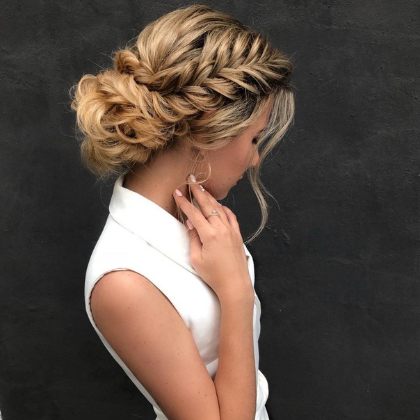 Все закрепите шпильками и украсьте по вкусу. Оригинальной прическу делает косичка, красиво оплетенная вокруг пучка.
