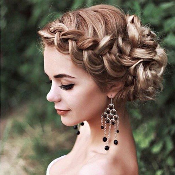 Прическа с плетением для прически на выпускной через Выглядит потрясающе, когда вы заплетаете небольшую косу в небрежный пучок. Вы можете уложить длинные волосы в локоны с помощью щипцов для завивки, чтобы придать прическе дополнительную плотность и объем.