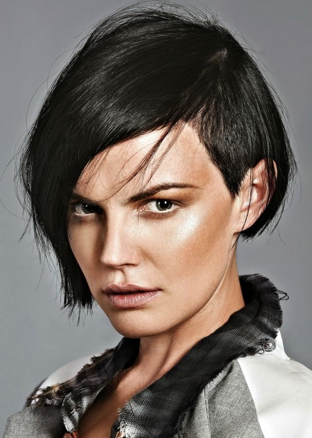 - Гладкая прическа «под мальчика» с частично выбритыми волосами;