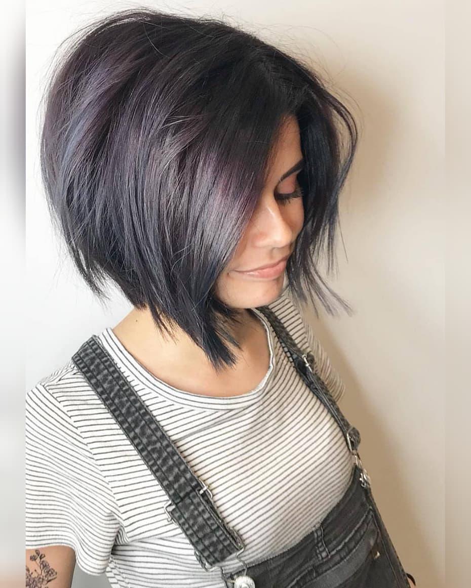 - каре с градуированными прядями, удлинением или выбритыми участками;