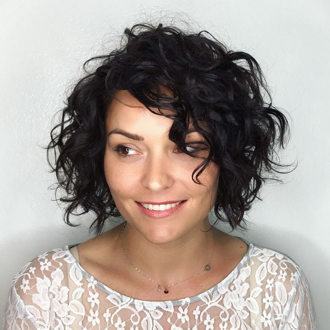 Прямая челка в сочетании с кудряшками выглядит нелепо, поэтому ее тоже необходимо завивать. Чтобы локоны смотрелись вместе с челкой гармонично, их закручивают вертикально или диагонально.