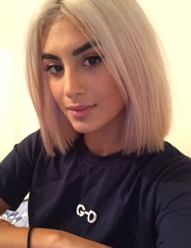 Эта платиновая блондинка имеет неровные вырезы по бокам и сзади, что придает текстурированный вид и облегчает укладку с помощью little product.