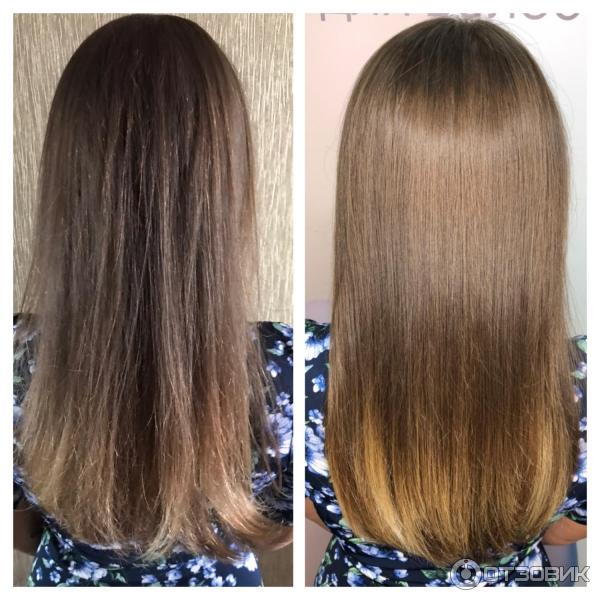 Волосы становятся более блестящими и шелковистыми. Благодаря насыщенному витаминному составу ботокса структура волос становится более объемной и плотной.