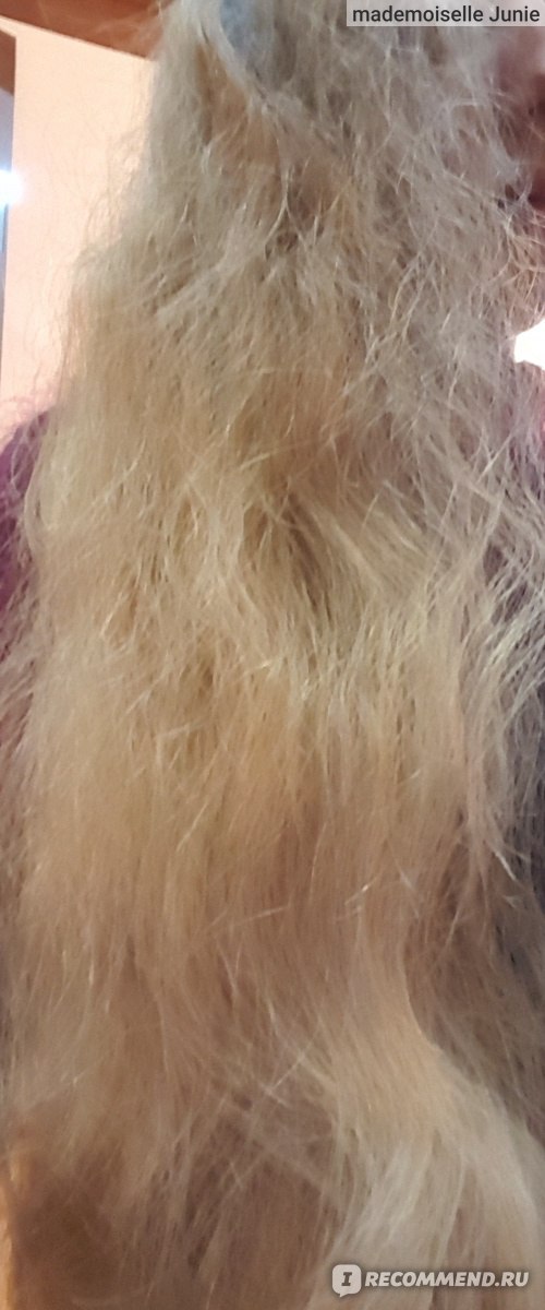 А теперь предположим, что вы давно уже блондинка и ваши волосы видели разных мастеров и каждый вносил свою лепту в процесс окрашивания /обесцвечения волос+неправильный уход дома. Я думаю результат очевиден!!!