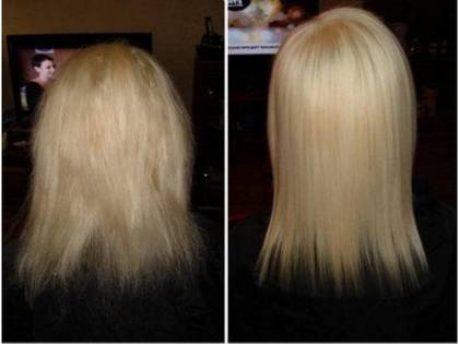 Разрыхлённый, обезвоженный волос требуется восстановить. Тщательно питать, увлажнять, сглаживать повреждения будет просто необходимо. Многие дамы склонны ещё больше усугублять картину. Новую причёску стараются надёжнее уложить с помощью термического воздействия, плотных стайлинговых средств. На улицу хочется выйти с непокрытой головой в любую погоду.