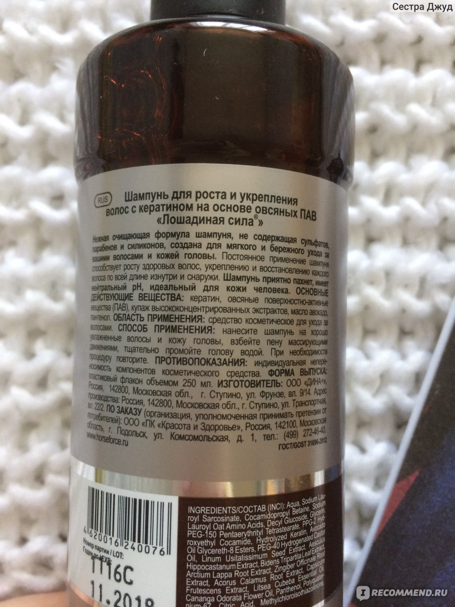 4 РекомендуюОтзыв: Шампунь Лошадиная сила Шампунь для роста и укрепления волос с кератином я решила попробовать только потому, что начиталась насколько полезны шампуни с кератином.