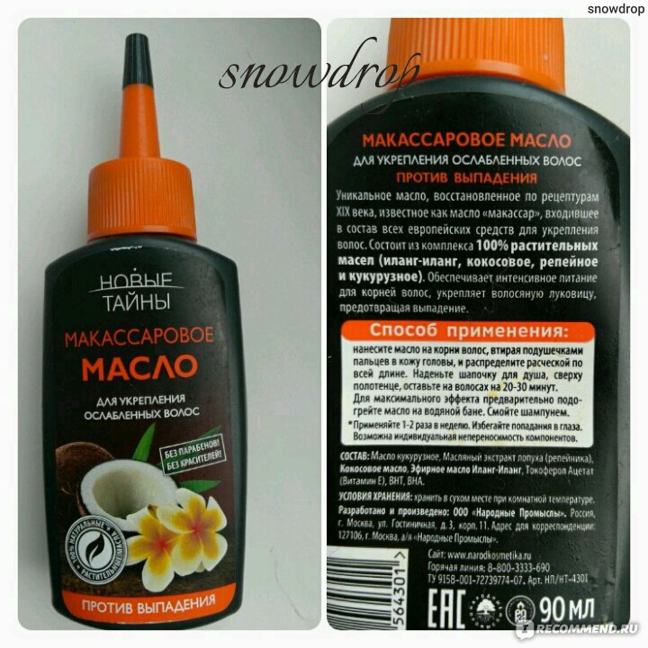 Все они необходимы для нормального роста волоса, питания кожи головы, укрепления фолликул. Устраняет сечение волос, нормализует работу сальных желез и снимает раздражение с кожи головы. Подходит для применения 2 – 3 раза в неделю, не утяжеляет волосы, не оставляет жирности или каких-либо других неприятных ощущений на коже головы, легко смывается шампунем. Не окрашивает светлые волосы, закрепляет и усиливает цвет и блеск после окрашивания.