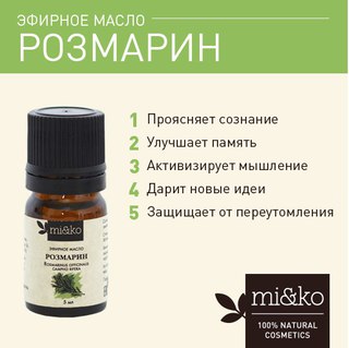 Основная функция эфирного средства – усиливать приток крови и обновлять клетки.Это говорит об эффективности применения масла розмарина для волос для быстрого роста, укрепления прядей, борьбы с выпадением и защиты от перхоти. К тому же эфир — это отличная добавка в уходовые средства, предназначенные для волос жирного и комбинированного типов.
