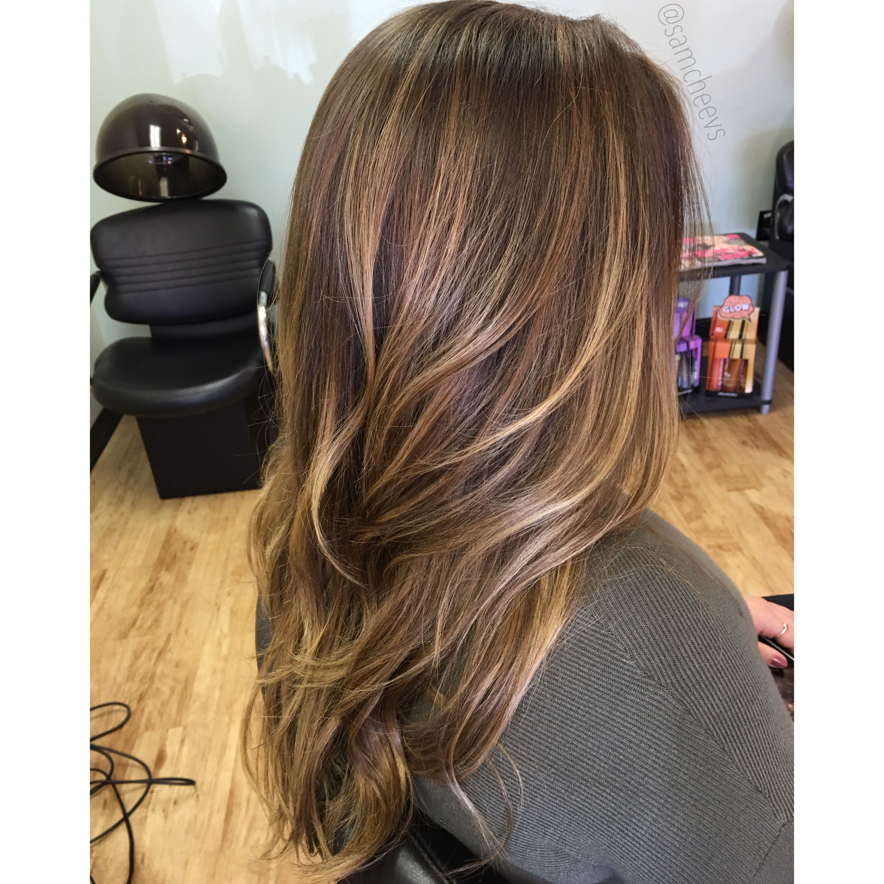В омбре она четкая, а в шатуш – более плавная и расплывчатая; - Балаяж. Делается как на длинные, так и на короткие. Заключается в растяжке цвета от кончиков до корней по всей длине. За счет этого создается эффект объемности и бликов.
