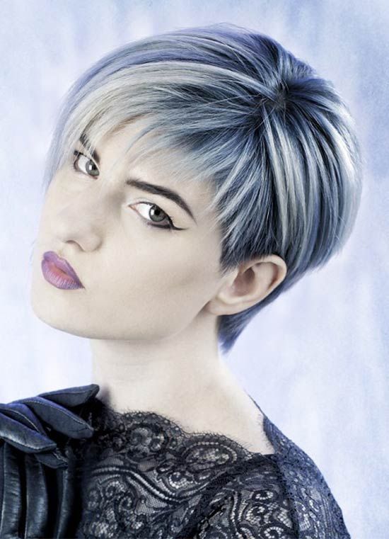 41. Натурально-серый с пурпурно-синими кончиками. Хотите немного другую прическу? Добавьте немного цвета с помощью синего цвета!