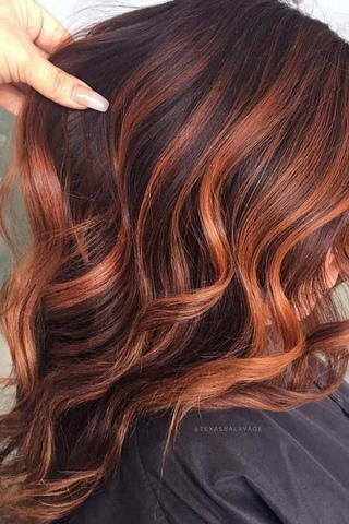 Немногие девушки знают, что темные и каштановые волосы прекрасно смотрятся после мелирования в рыжий цвет.