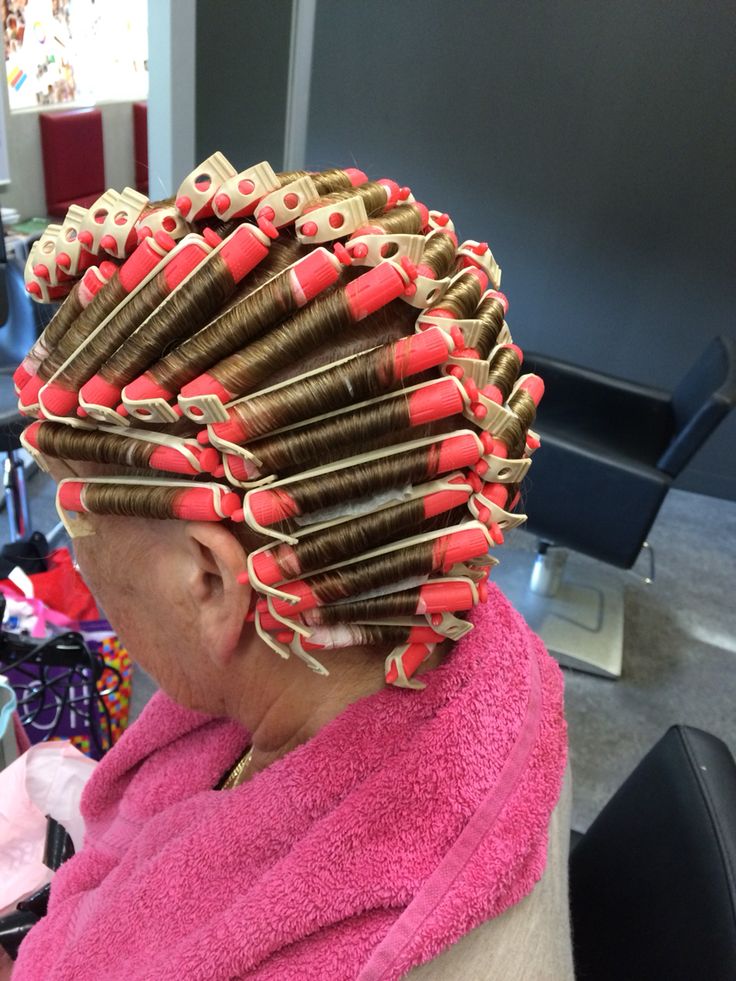 Во время процедуры, которая длится около полутора часов, мастер наносит на волосы специальный состав, затем накручивает волосы на бигуди.