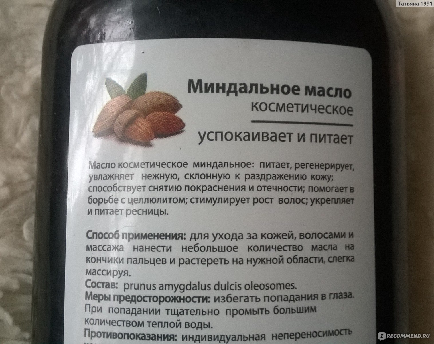 Миндальное масло не оказывает на волосы вредного воздействия. Возможна индивидуальная непереносимость.